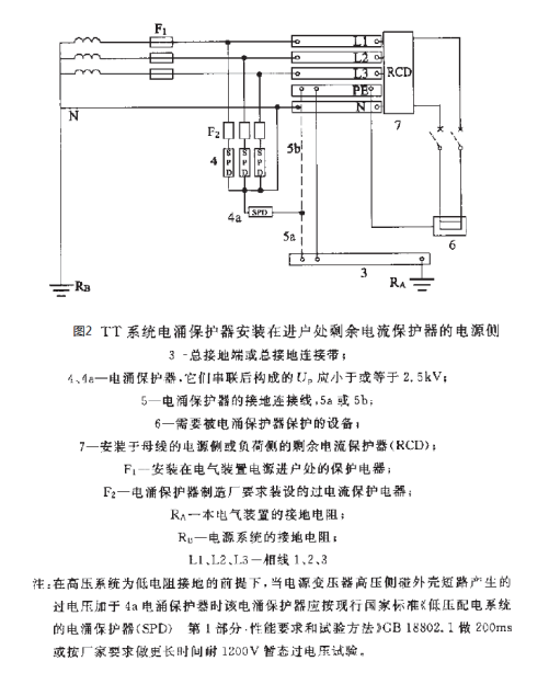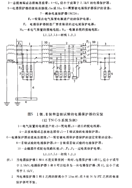 4.7.5高壓避雷器應選擇密封結構良好的無間隙氧化物避雷器。4.7.6低壓斷路器額定絕緣電壓:交流1000V。額定短路接通能力:65kA(峰值)額定短路斷開能力:800kVA及以下配變時選用,35kA(有效值):額定短時附受電流:1秒。1000kVA及以上配變時選用,50kA(有效值),額定短時時受電流:1秒。選擇斷路器時,斷路器的額定運行短路分斷能力ICS或極端短路分斷能力ICU不應小于被保護線路最大三相短路電流的有效值。如有困難雅,至少應保證斷路器的額定極限短路分斷能力U不小于被保護線路最大三相短路電流的有效值。4.7.7別余電流保護裝置設置原則1.末端保護1)屬于I類的移動式電氣設備及手持式電動工具:2)生產用的電氣設備:3)施工工地的電氣機械設備:4)安裝在戶外的電氣裝置:5)臨時用電的電氣設備:6)機關、學校、賓館、飯店、企事業單位和住宅等除壁掛式空調電源插座外的其他電源插座或插座回路:7)游泳池、噴水池、浴池的電氣設備:8)安裝在水中的供電線路和設備:9)醫院中可能直接接觸人體的電氣醫用設備:10)其他需要安裝利余電流保護裝置的場所。2.線路保護低壓配電線路根據具體情況采用二級或三級保護時,在總電源端、分支線首端或線路末端(農村集中安裝電能表箱、農業生產設備的電源配電箱)安裝利余電流保護裝置。4.7.8電涌保護器的設置原則1.電涌保護器的設置原則需滿足《建筑物防雷設計規范GB500572010》的相關要求。2.在可能發生對地雷閃擊的地區,低壓電源線路的總配電箱、配電柜處應裝設I級試驗的電涌保護器,電涌保護器的電壓保護水平值Up應小于或等于2.5kV。每一保護模式的沖擊電流值Ii印,當無法確定時,沖擊電流應取等于或大于12.5kA。3.電涌保護器配置應與同一線路上游的電涌保護器在能量上互相配合。電涌保護器在能量上配合的資料應由制造商提供。若無此資料,Ⅱ級試險的電涌保護器其標稱放電電流I不應小于5kA:Ⅲ級試驗的電涌保護器,其標稱放電電流I不應小于3kA。4.電涌保護器的最大特續運行電壓心不應小于表4.7.8-1所規定的最小值:表