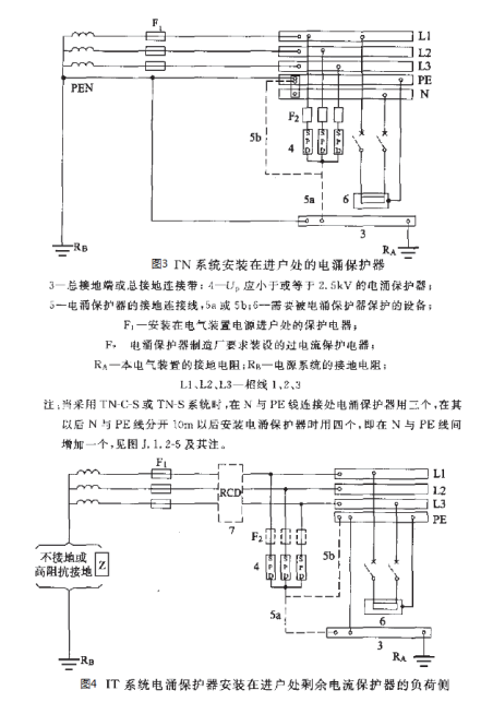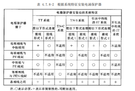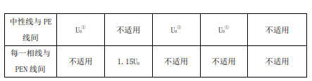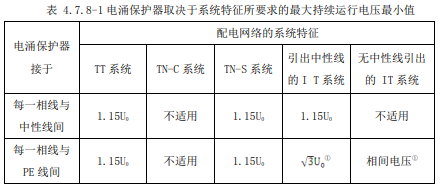 4.7.8-1電涌保護器取決于系統特征所要求的最大持續運行電壓最小值注:1標有①的值是故障下最壞的情況,所以不需計及15%的允許誤差。2U,是低壓系統相線對中性線的標稱電壓,即相電壓220V。3此表基于按現行國家標準《低壓配電系統的電涌保護器(SPD)第1部分:性能要求和實險方法GB18802.1標準做過相關試臉的電涌保護器產品。5.電涌保護器的接線形式應符合表4.7.8-2的規定。具體接線圖見圖1圖5。其中TN系統中的SPD的接線形式:在電源進線處,TN-S或TNCS系統的中性導體與PE導體直接相連(連接點與SPD安裝位置之間的距離小于0.5m時,或第二級SPD2與前級SPD1的距離小于10m時),可省路中性導體與PE導體之間的SPD.在其后N導體與PE導體分開10m以外,應在其N導體與PE導體間增加一個電涌保護器。