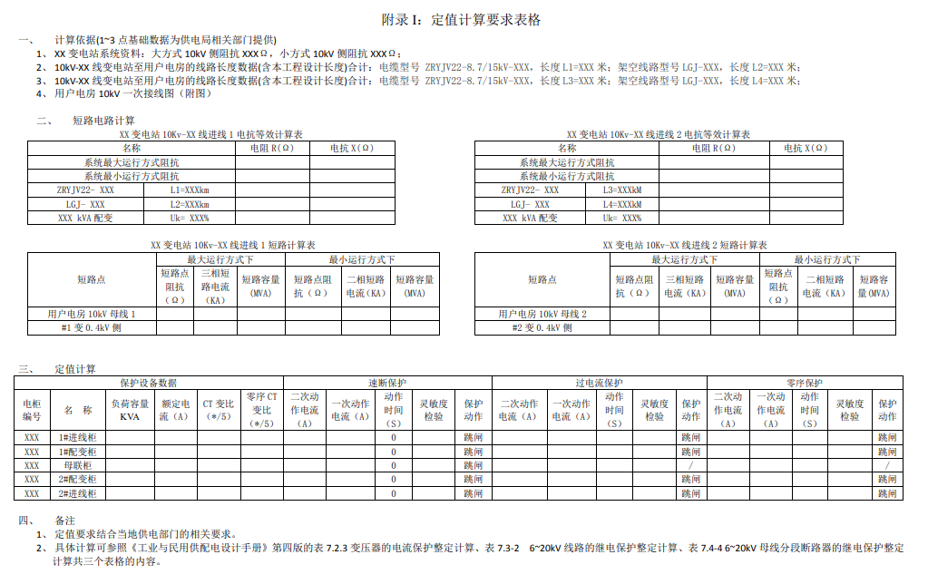 1.1主要設計標準、規程規范:GB/T12325《電能質量供電電壓偏差?GB/T12326《電能質量電壓波動和閃變?GB/T13955《利余電流動作保護裝置安裝和運行》GB/T14549《電能質量公用電網諧波》GB/T15543《電能質量三相電壓不平衡?GB/Z29328《重要電力用戶供電電源及自備應急電源配置技術GB/T36040《居民住宅小區電力配置規范?GB50052《供配電系統設計規范》GB50053《20kV及以下變電站設計規范?GB50054《低壓配電設計規范。GB50057《建筑物防雷設計規范》GB50060《3一110kV高壓配電裴設計規范GB/T50062《電力裝置的繼電保護和自動裝置設計規范》GB/T50063《電力裝置電測量儀表裝置設計規范”GB50227《并聯電容器裴置設計規范JGJ 16《民用建筑電氣設計規范》DL/T5222《導體和電器選擇設計技術規定?DL/T 620《交流電氣裝置的過電壓保護和絕緣配合》DL/T 621交流電氣裘置的接地。DL/T5044《電力工程直流系統設計技術規定》DL/T5725《35kV及以下電力用戶變電所建設規范3《中國南方電網公司110kV及以下配電網規劃指導原則》《中國南方電網城市配電網技術導則》 《中國南方電網公司標準設計和典型造價V2.1》《中國南方電網有限責任公司10kV及以下業擴受電工程技術導則》《中國南方電網有限責任公司配電網安健環設施標準《南方電網公司電能計量裝置典型設計》電監安全【2008】43號文